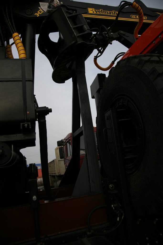 Для погрузочных работ за кабиной шасси находится гидроманипуляторная установка ОМТЛ-97 (ранее именовавшаяся производителем ПЛ-97), которая позволяет загружать и выгружать связки лесозаготовок массой до трех тонн.