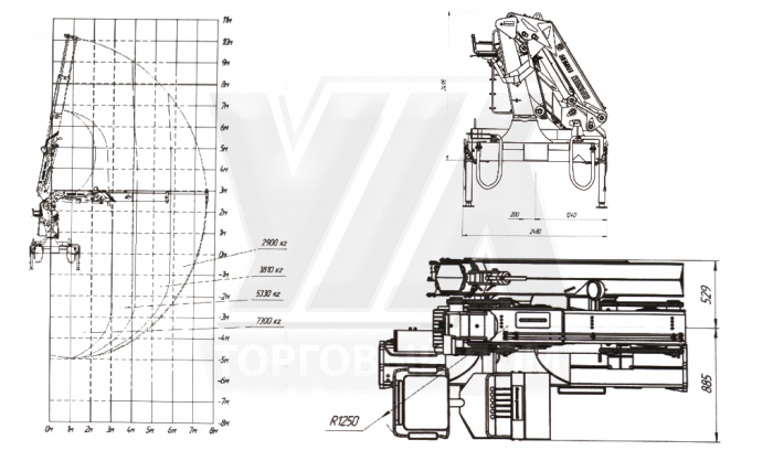 Грузоподъемность на максимальном вылете2900 кг1630 кг