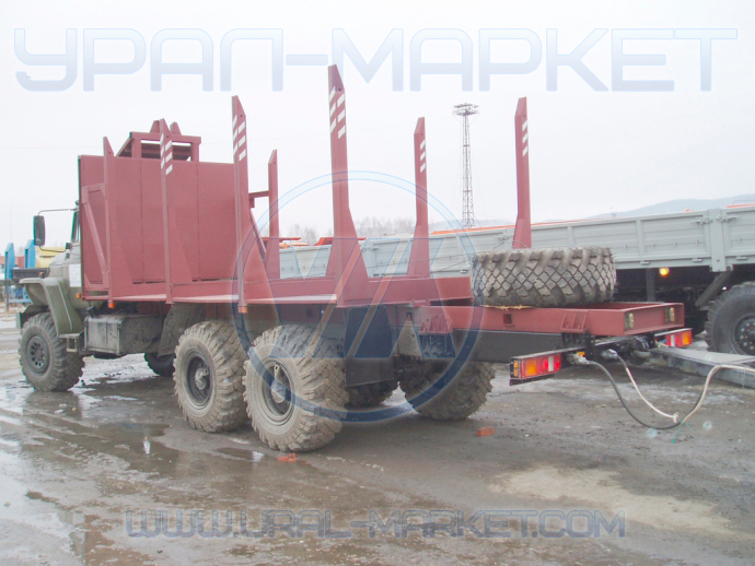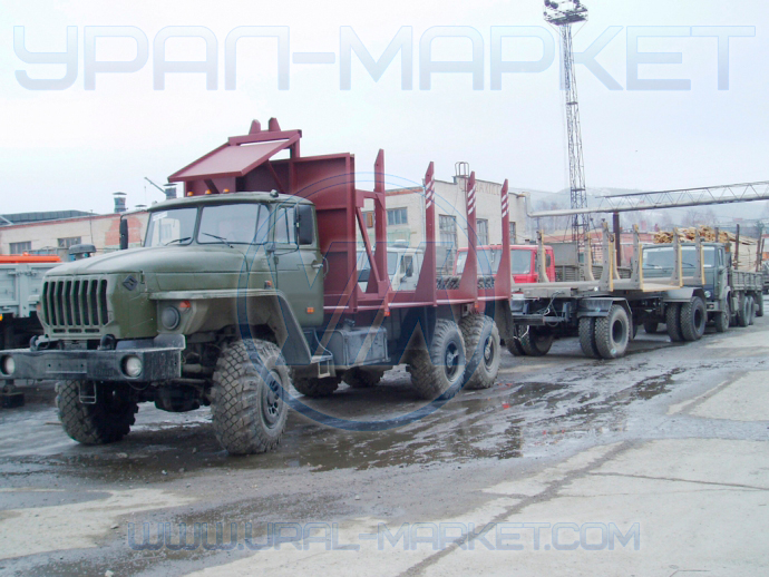 Сортиментовозный тягач на вездеходном шасси «Урал 4320-1912-60М» служит для транспортировки бревен длиной до 6 метров. Тягач обладает высокой проходимостью и может двигаться по любым видам дорог. Грузоподъемность автомобиля позволяет перевозить до 9 тонн леса.