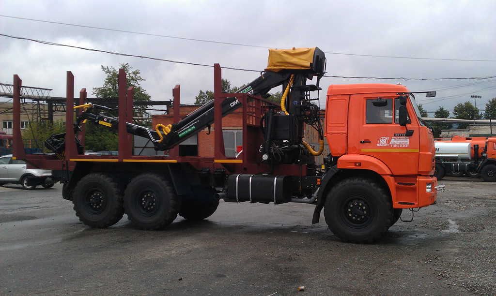 Сортиментовозный тягач на базе «Камаз 43118» модификации 6749A7-10 — один из самых популярных сортиментовозов в нашей стране и в странах ближнего зарубежья. Имея колесную базу 6х6 с односкатной ошиновкой, этот трехосный автомобиль имеет отличную проходимость и может эксплуатироваться даже на бездорожье.